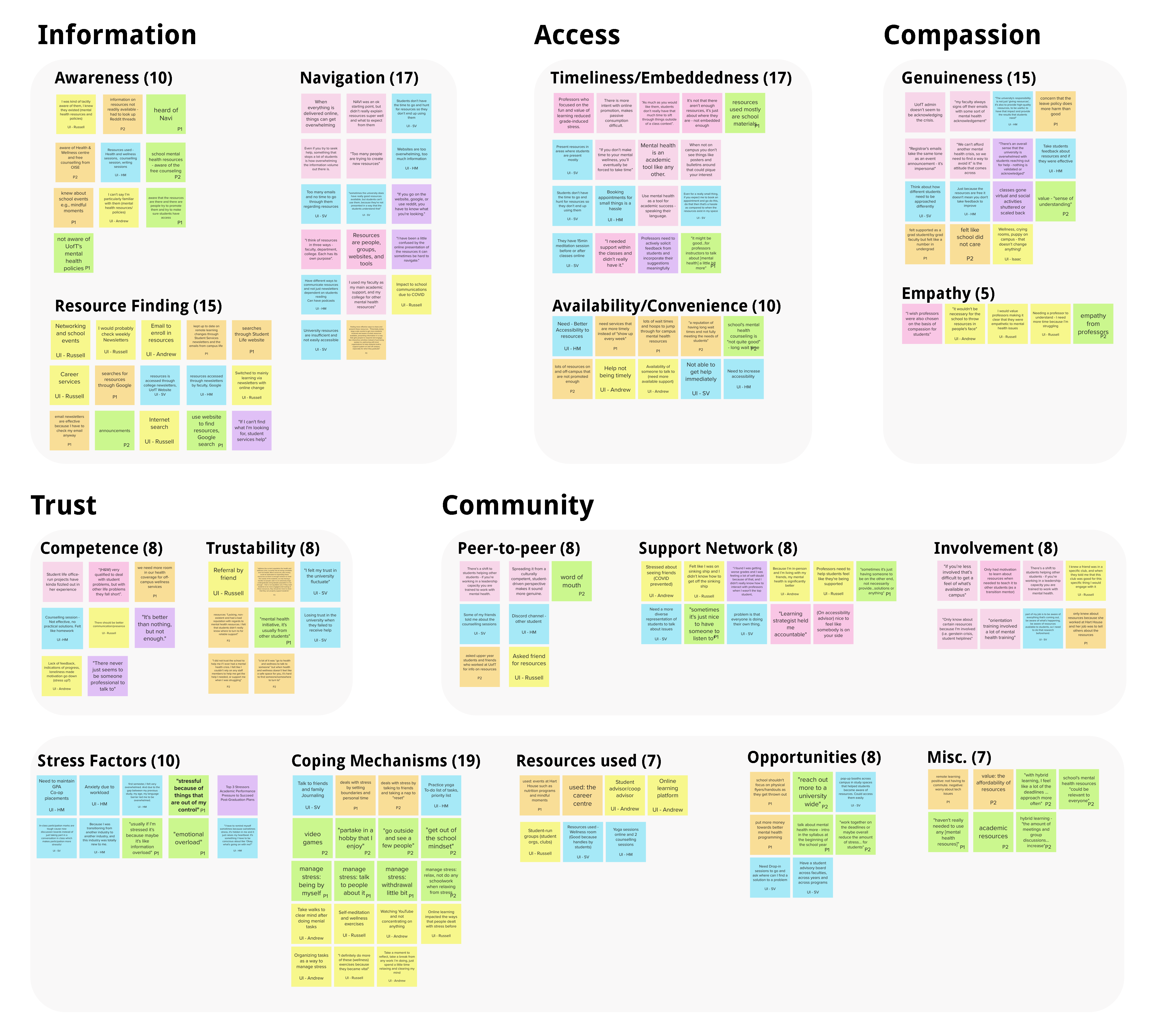 Based on these responses we then created an affinity map to find themes and cluster our research findings.